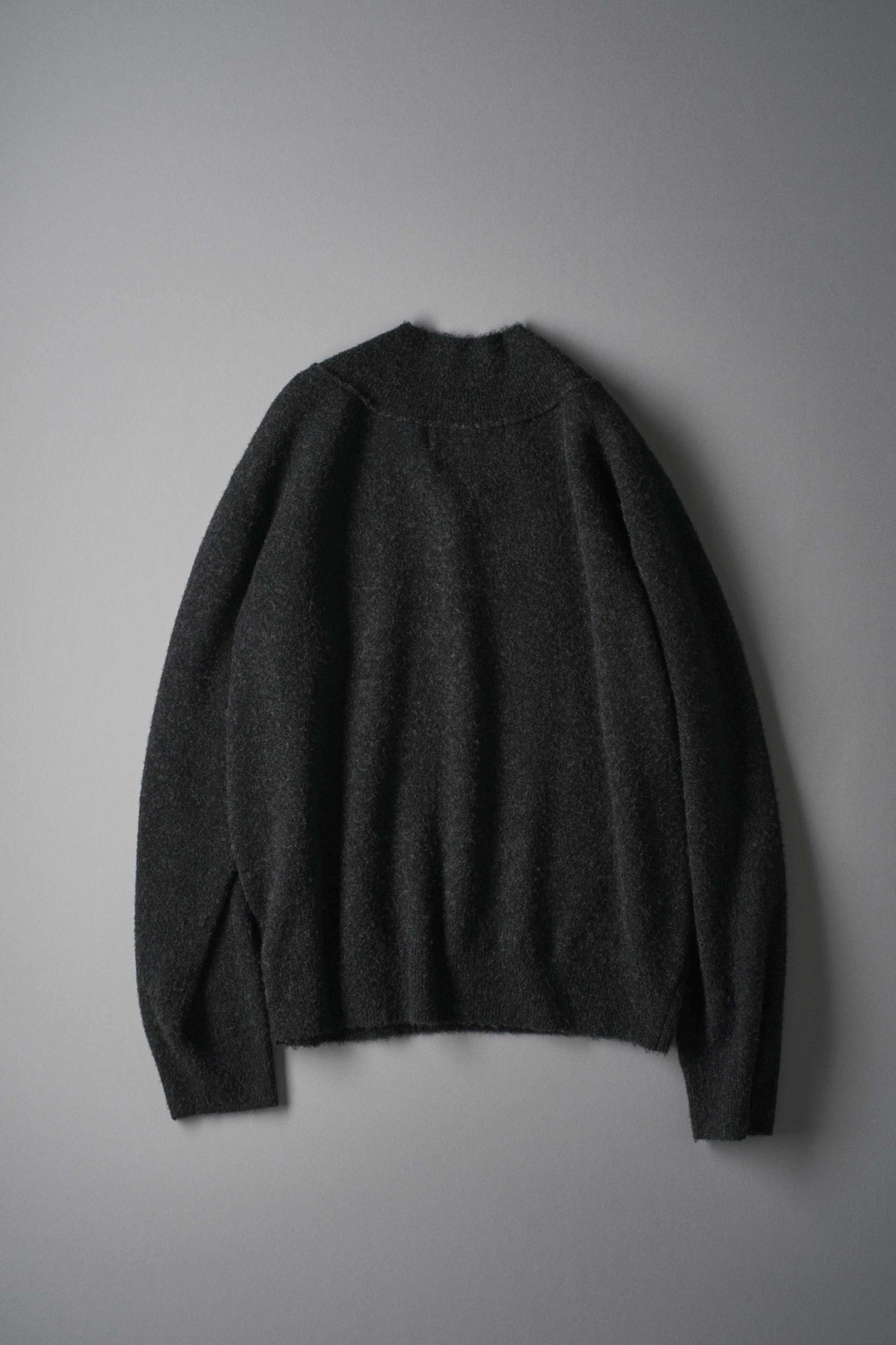 ごく柔らかな豪州産メリノを縮絨後、両面に起毛を施し仕上げたチルデンニット。 リブ目や接ぎの境界を掻き消すように起毛を重ねることで、柔らかな着心地とシャープな表情を同時に作りあげています。