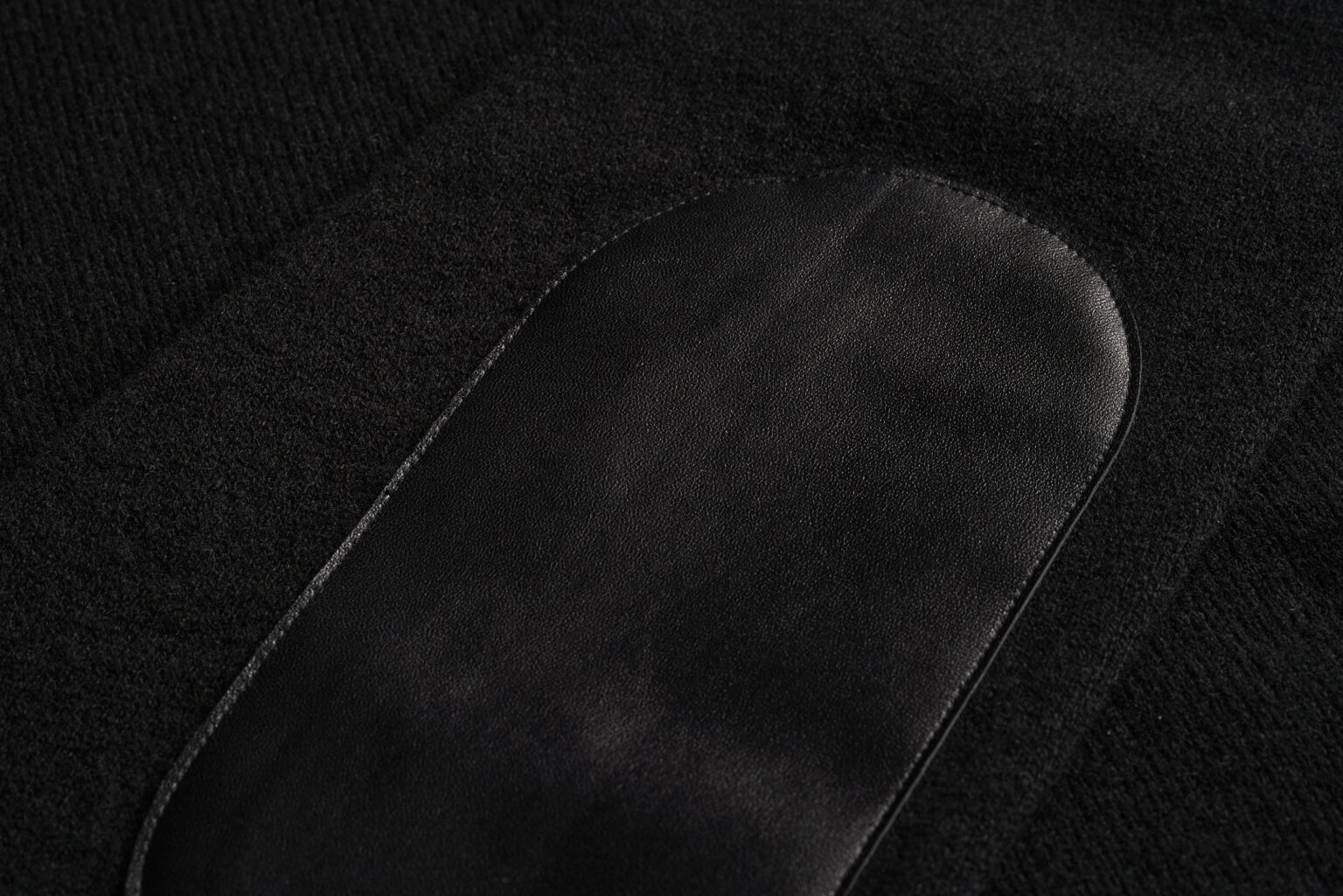 肘当ては、きめ細やかな銀面と柔らかな風合いをもつラムスキンを使用しています。