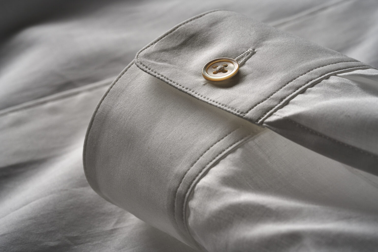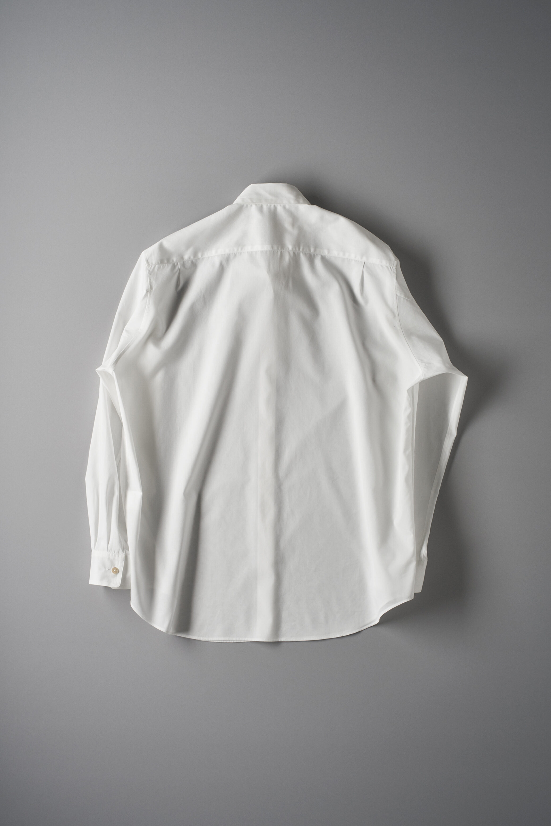 柔らかなハリと、透明度の高い冴えた白をもつ170番双糸スビンコットンの平織。 あらかじめ濃度を低く抑えた苛性ソーダ液に通常よりもゆっくりと浸すことで、指先にかすかに抵抗する繊細な毛羽を残しながらも、より一層薄く緻密な織地に仕上げています。 <レギュラー型>