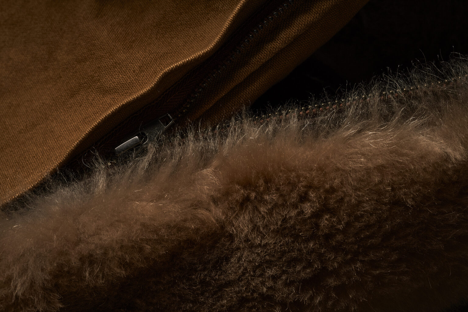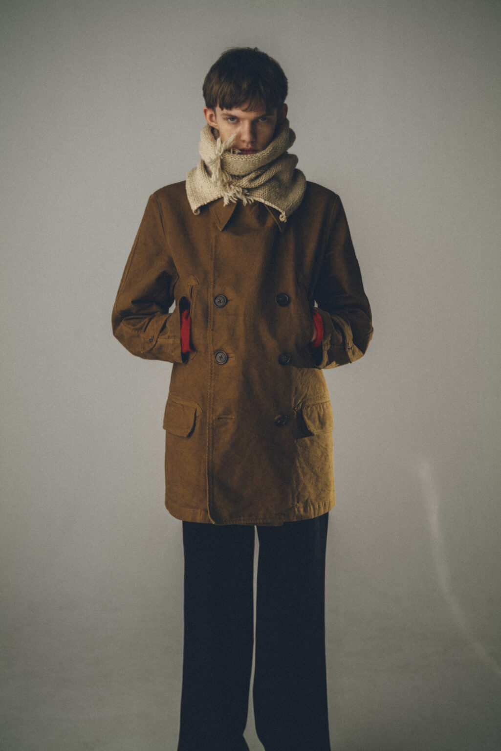 オーガニックコットンのダック地によるマッキーノコート。 染料の滞留により生じるナチュラルな濃淡がディテールの輪郭を引き立たせ、その剛質な風合いをより際立たせています。 ライナーには、繊細な毛質をもつ内モンゴル産カシミヤ山羊の毛皮を使用。ダブルフェイス用に丁寧に鞣され染色されたカシミヤは、繊維皮革ともに湿り気を帯びたかのようなしっとりとした風合いに仕上げられています。 <一重仕立て> ※ライナー単体でのご着用はできません。
