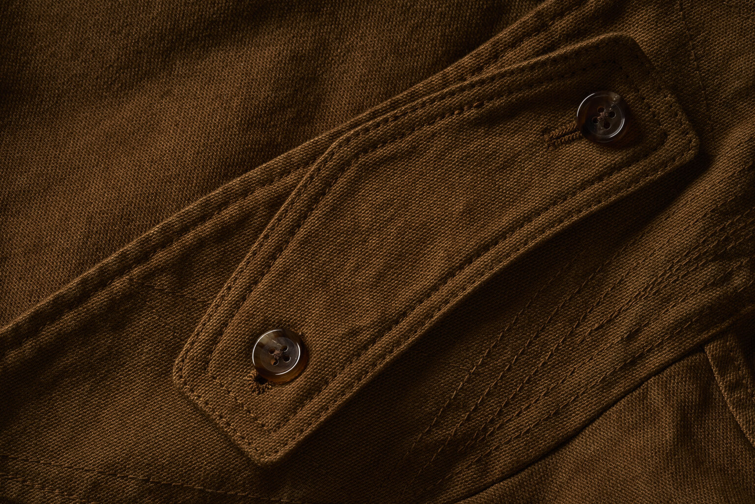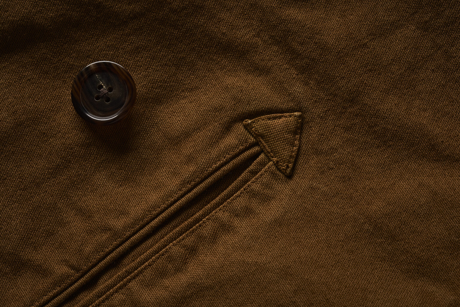 オーガニックコットンのダック地によるマッキーノコート。 染料の滞留により生じるナチュラルな濃淡がディテールの輪郭を引き立たせ、その剛質な風合いをより際立たせています。 ※W-058のライナー無し、一重Verです。
