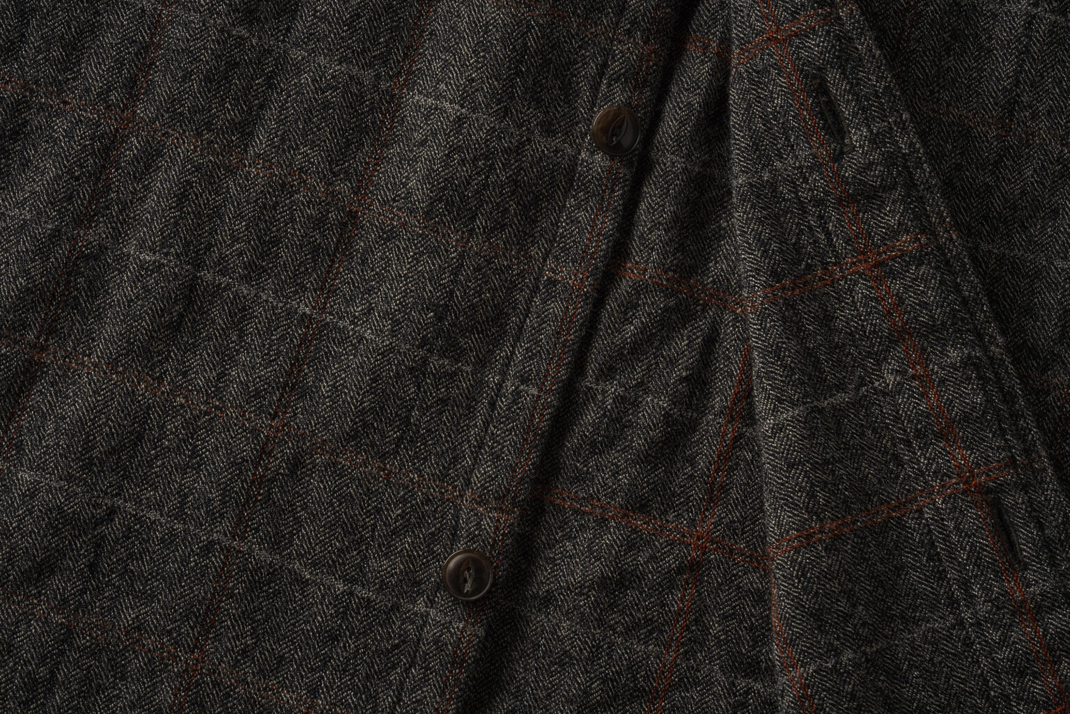 二色を撚りあわせた杢糸をベースに、多色で構成されたアルパカウールのウインドウペン。 混率は僅かながらも、確かに残る獣毛特有のスポンディッシュなふくらみが大きな特徴です。最終工程で洗いにかけることで、杢糸の複雑な色目を際立たせ、よりナチュラルな表情に仕上げています。