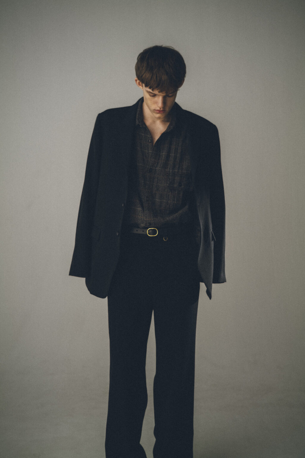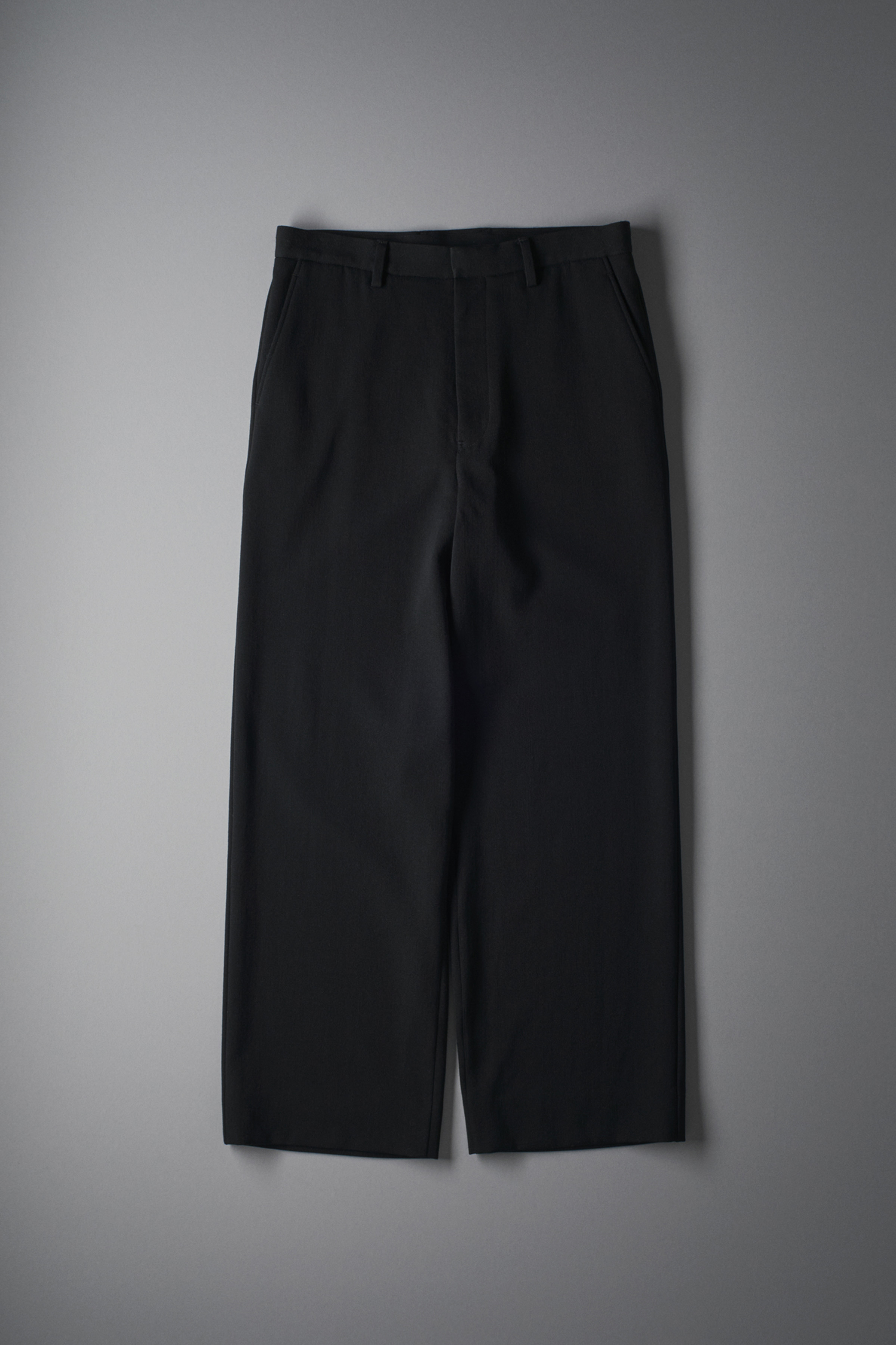 高密度に織られたウールギャバジン。 オフスケール、二重織り、ワッシャーと丁寧に重ねられた工程により、しなやかさ、厚み、弾力とが非常にバランスよく整えられた織地。芯のあるドレープによって、柔らかくも重みのあるシルエットを作りあげます。 <ストレートシルエット> <一重仕立て>