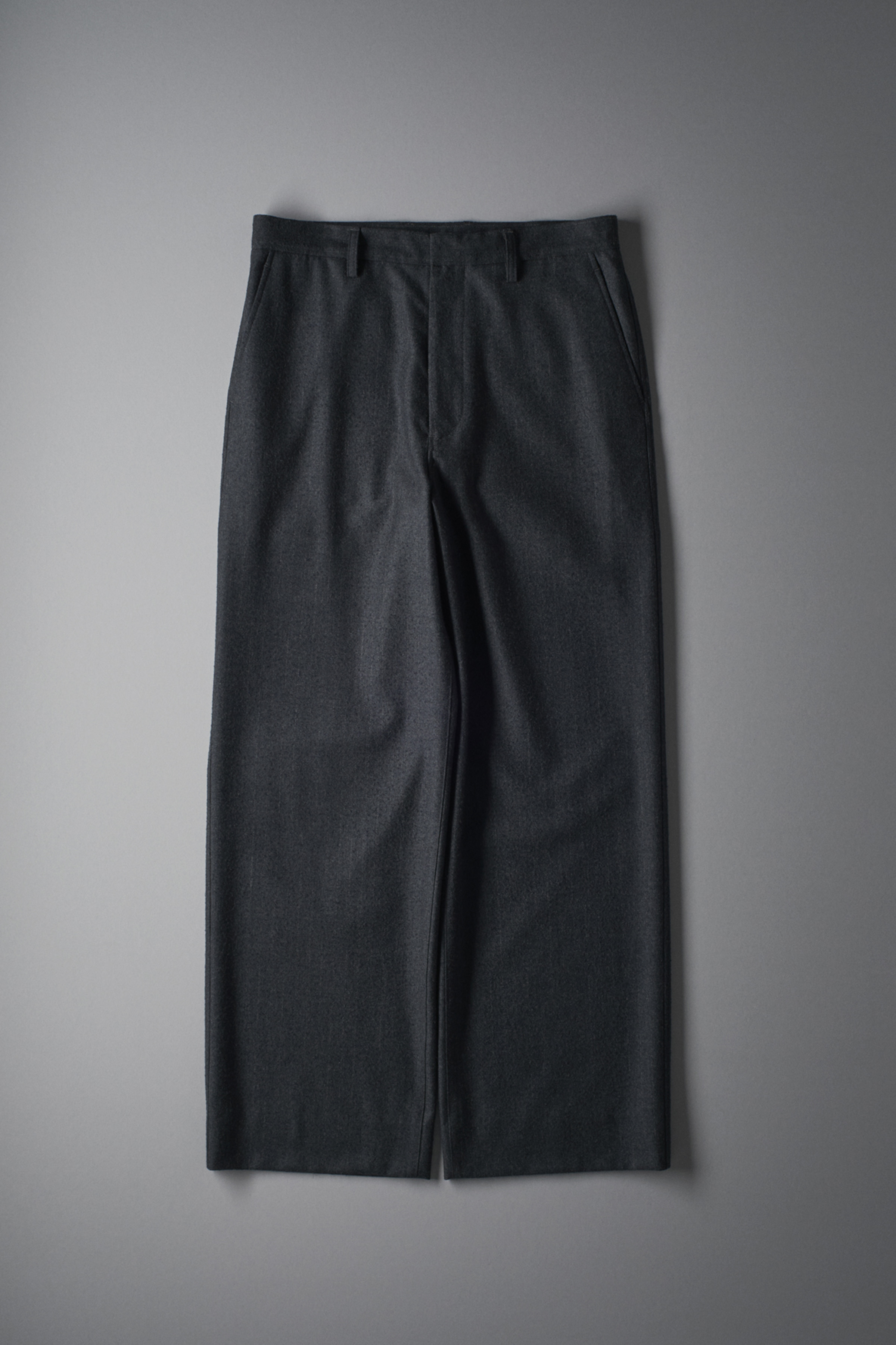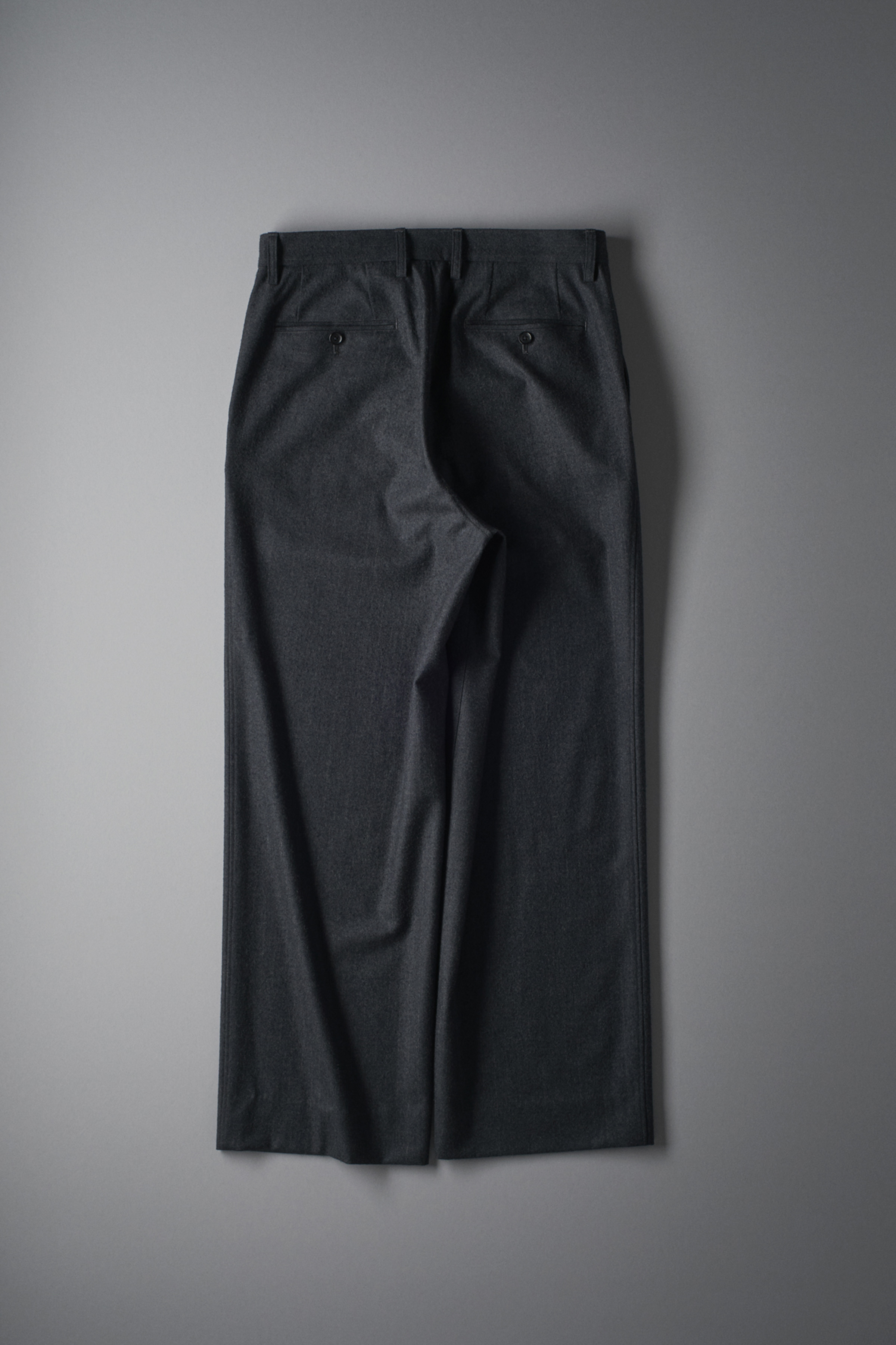 ストライプ地に、ナッピングを施し粗野に仕上げた織地。 18,5μと細く柔らかなファインメリノを縮絨し光沢を持たせた後、絡まる繊維を解くように起毛をかけ手作業で一点ごとにナッピングを施しています。地に潜む艶と、表面を覆う毛玉のコントラストにより独自の表情を作りあげています。 <ストレートシルエット> <一重仕立て>